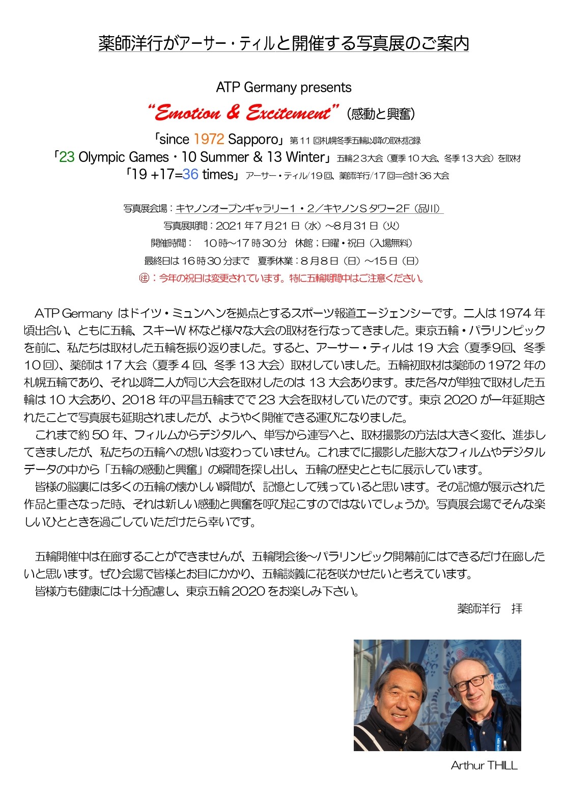 写真展期間:2021年7月21日(水)~8月31日(火)
